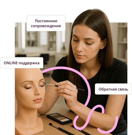 Мы даем очень много практики на моделях, делаем портфолио, убираем страх работы с реальными клиентами. После обучения выдаем диплом, который подтверждает вашу квалификацию и открывает двери в салоны и клиники.