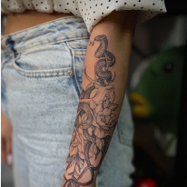 Регулярно повышает свою квалификацию, участвует в тату-конвенциях